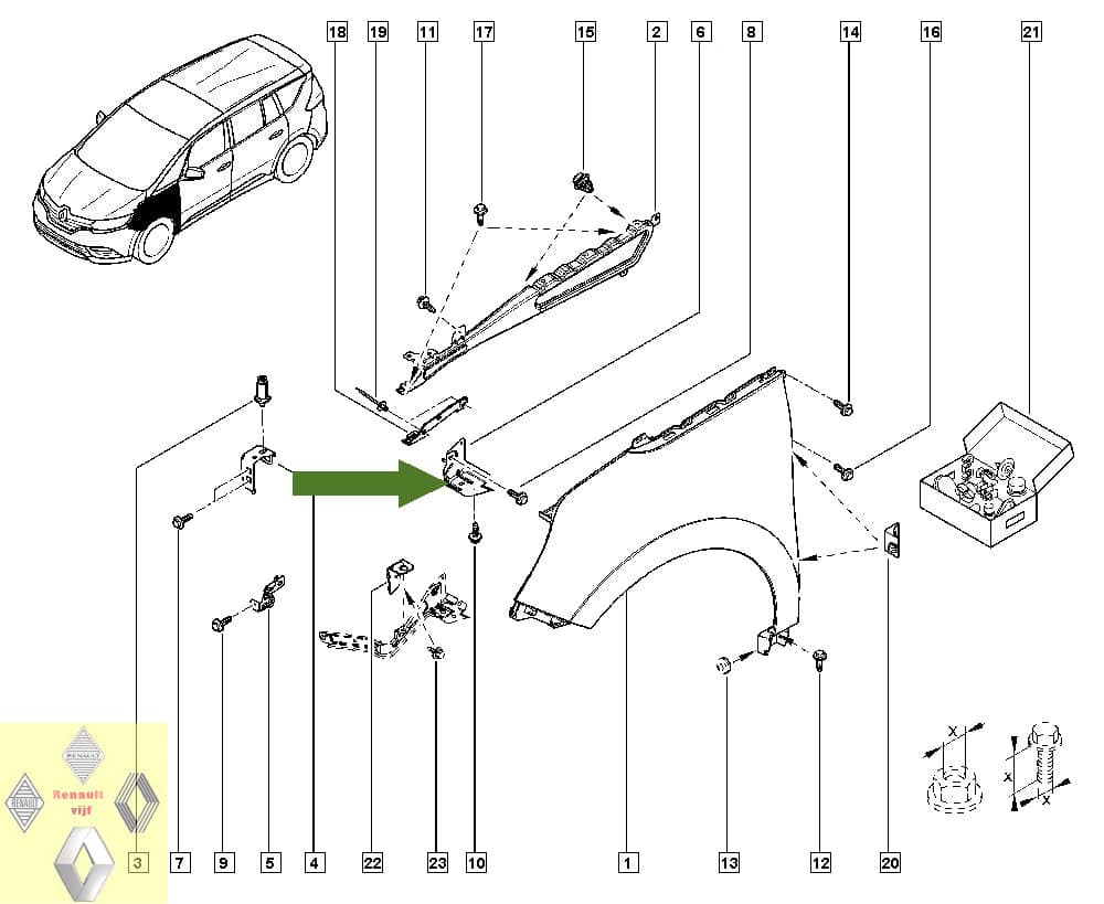 Bevestigingsbeugel linker voorscherm Renault Espace V.