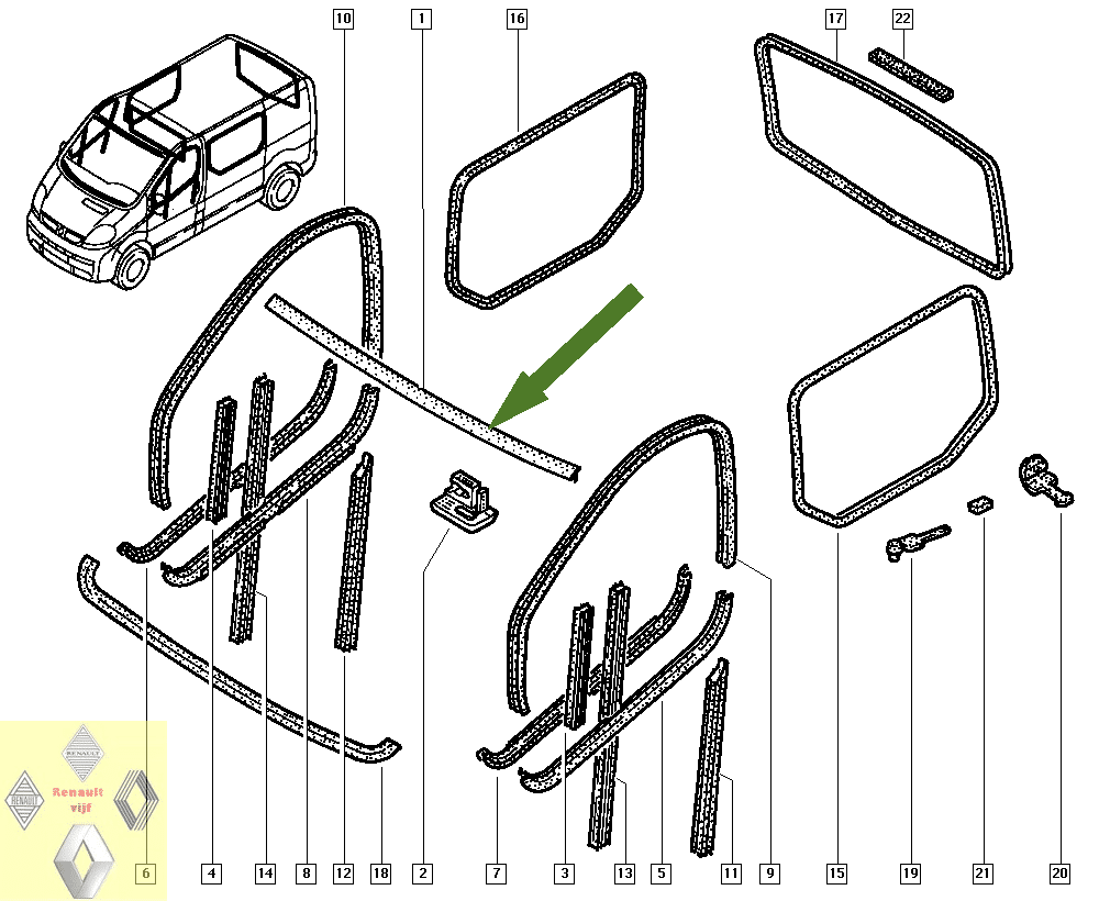 Rubber zit aan bovenzijde van het voorraam geplaatst.