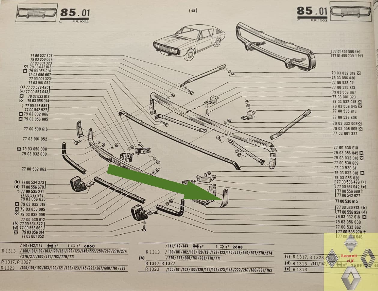 Bumperdeel chroom links voorzijde Renault 17.