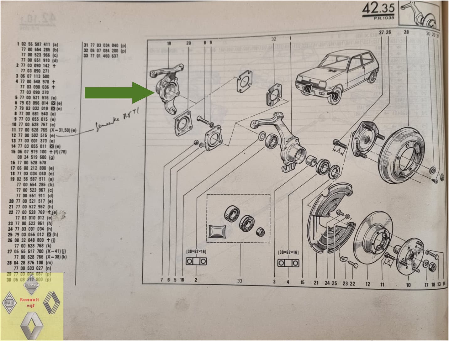 Fusee rechts 62 mm Renault 5.
