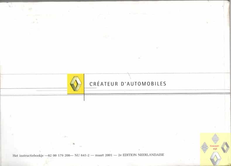 Renault nummer 8200179208 NU641-2 2e Edition Néerlandaise en is van maart 2001.