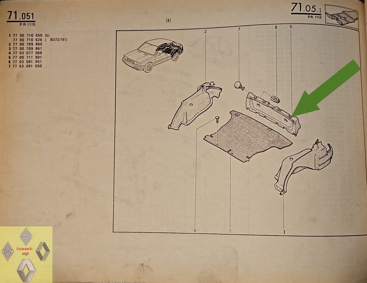 Kap bevat krassen en is zwart van kleur en is uit een Renault 11 gehaald van 1987.