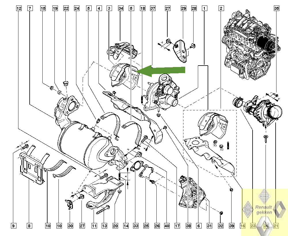 Schild zit bevestigd op de turbo van de 1.6 dCi diesel motor.