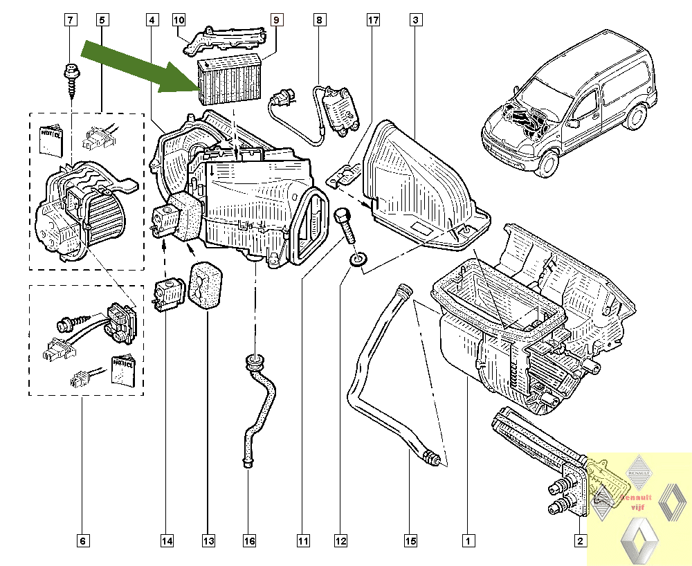 Interieurfilter Renault Clio II, Kangoo of Megane I, Dacia Logan I of Sandero I.