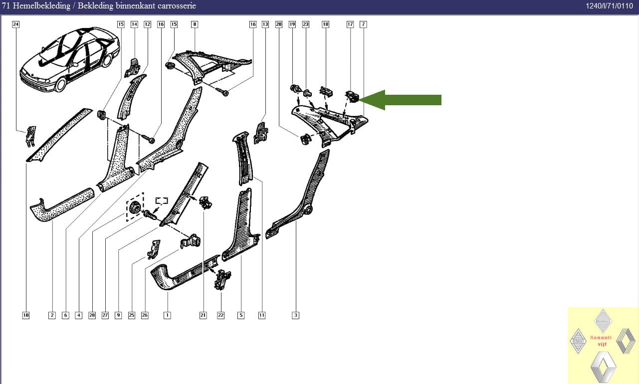 Klem hemelbekleding Renault Laguna I.