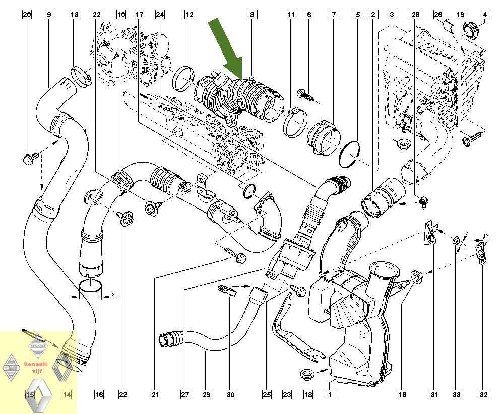 Lucht inlaat slang 2.0 16V Turbo Renault Megane III.