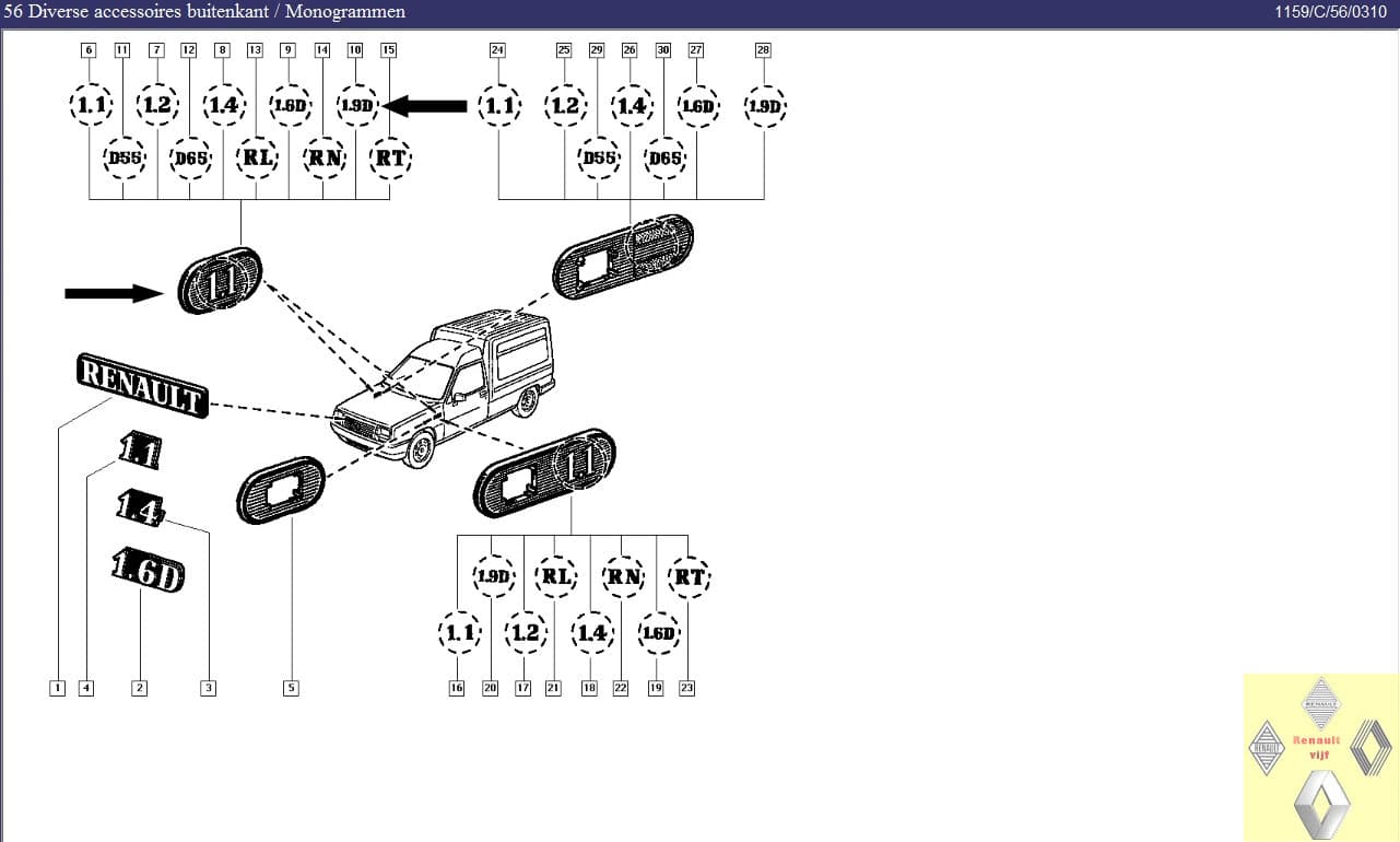 Monogram “1.9 D” Renault 19, Clio I (phase 1 en 2) of Express.