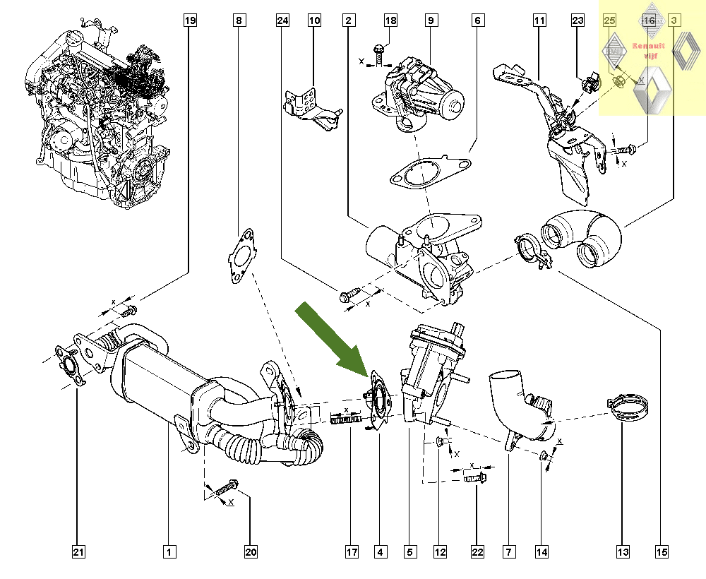 Pakking EGR klep 1.5 dCI K9K diesel motor Renault Captur I, Clio III/IV, Kangoo.