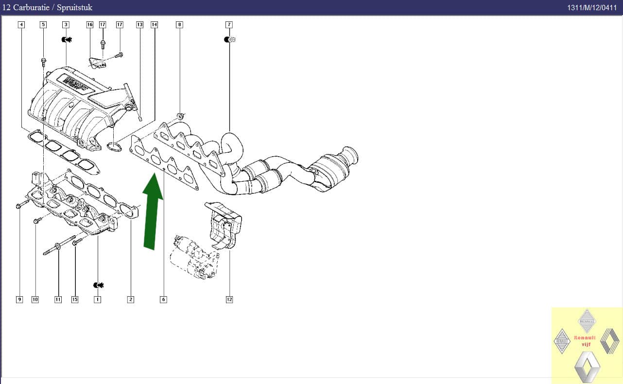 Pakking spruitstuk F4R motor Renault Clio II.
