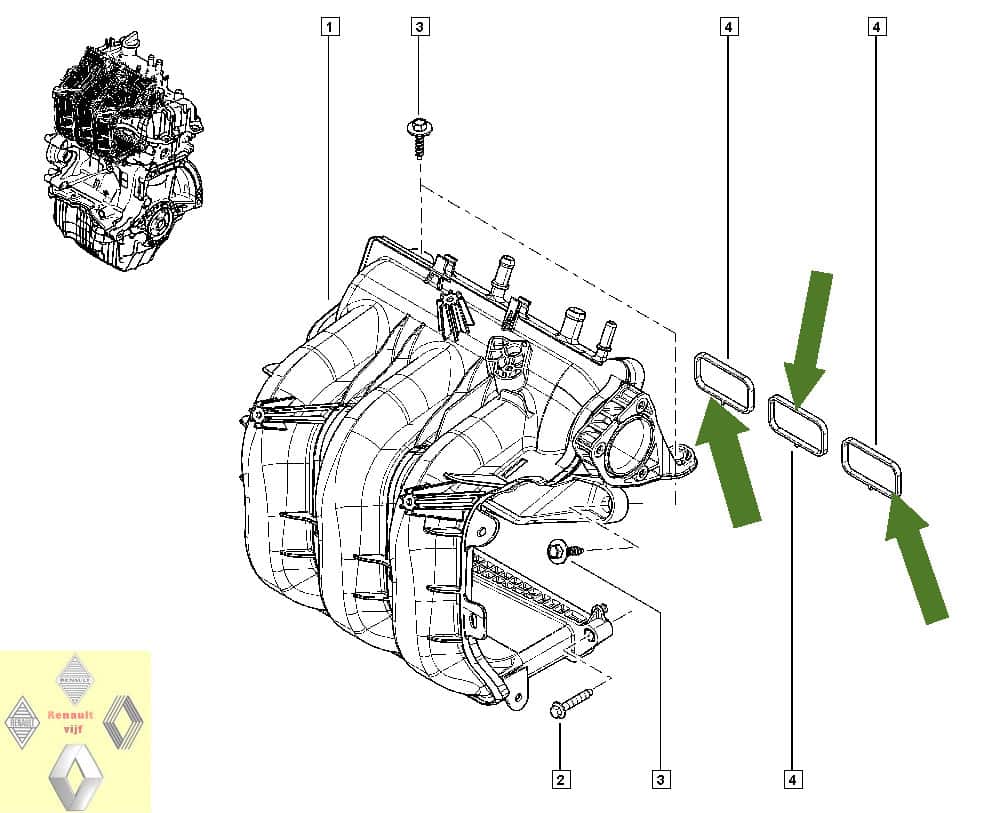 Pakking spruitstuk inlaat B4D of H4D motor Renault Captur II, Clio IV, Twingo III of Dacia Jogger I, Logan II MCV of Sandero II/III.