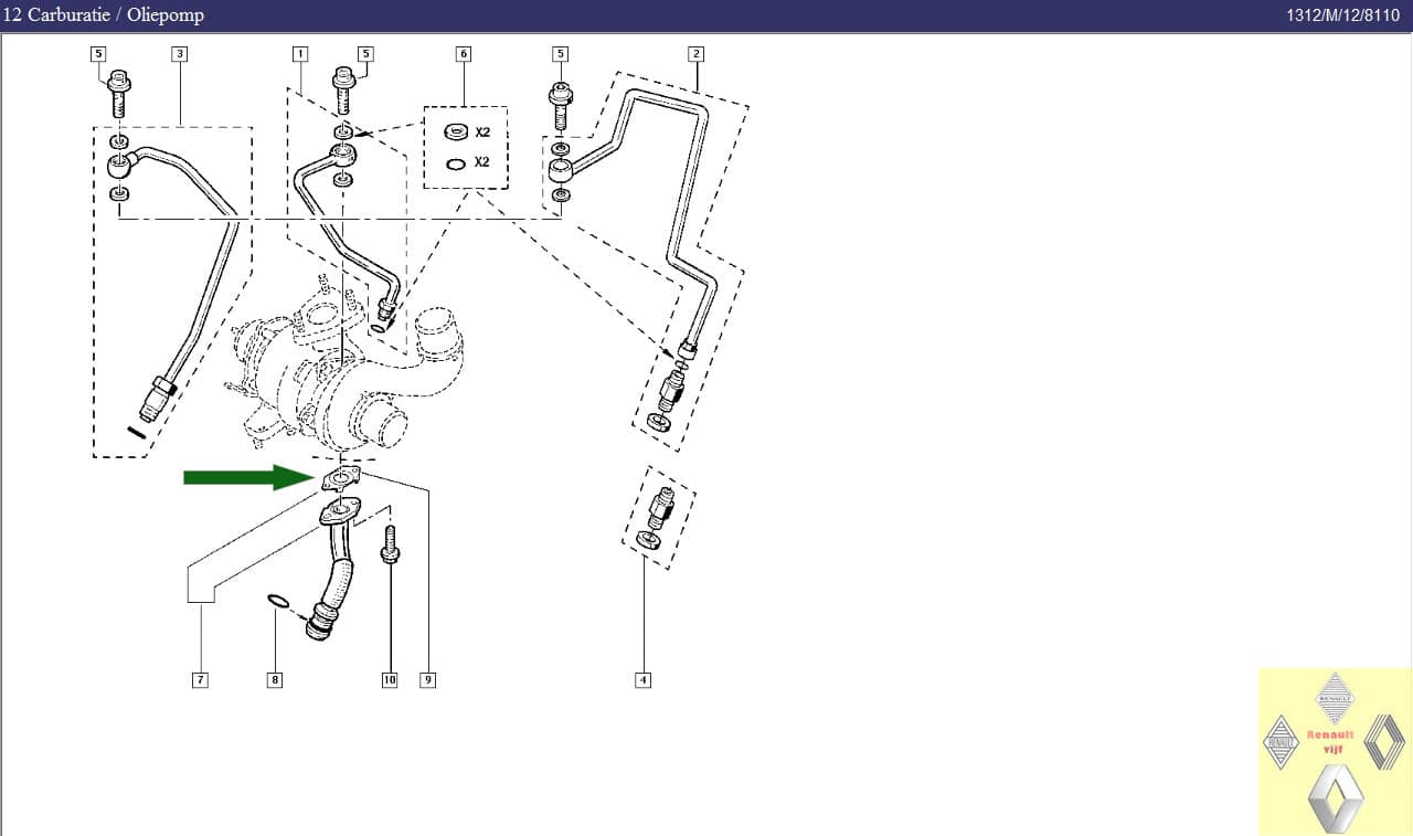 Pakking turbo G9T, F4R of K9K motor Renault Avantime, Clio II/III, Express, Espace III/IV, Kangoo, Laguna I/II/III, Megane I/II, Scenic I/II, Safrane of Vel Satis.