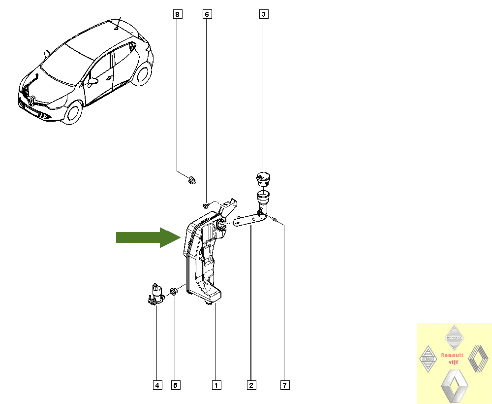 Reservoir ruitensproeier Renault Clio IV of Captur.