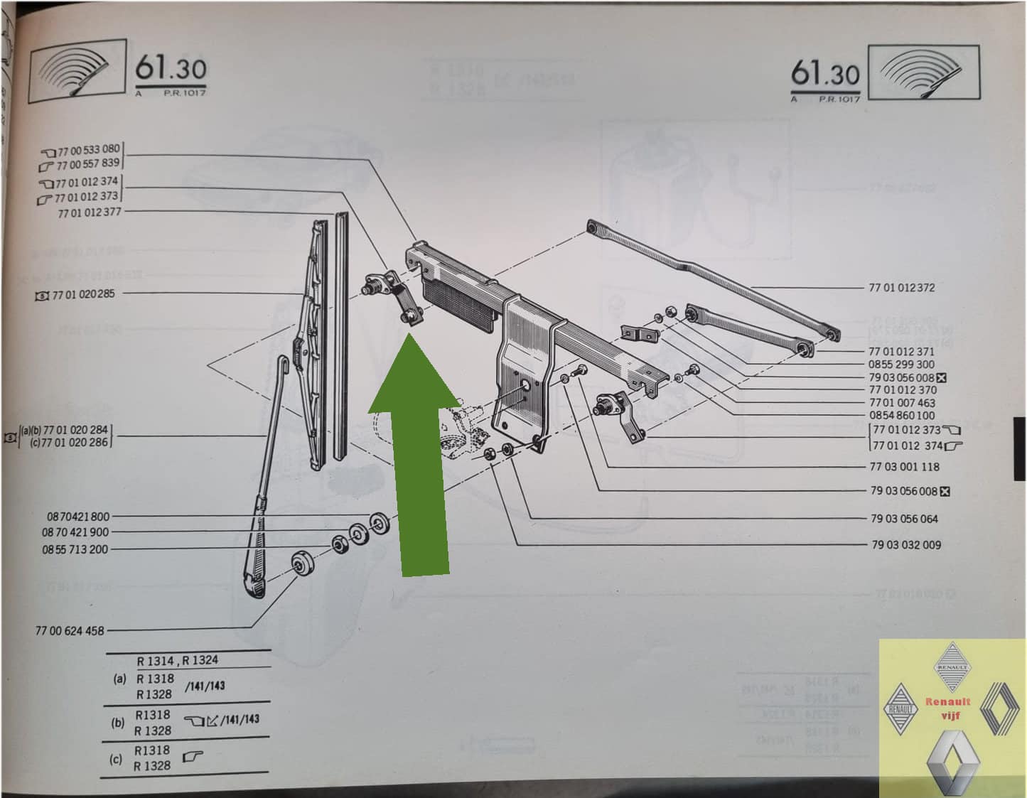 Ruitenwisser reparatiedeel rechts Renault 15 of 17.