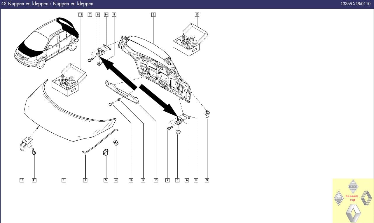 Scharnier achterklep Renault Megane II of Scenic II.