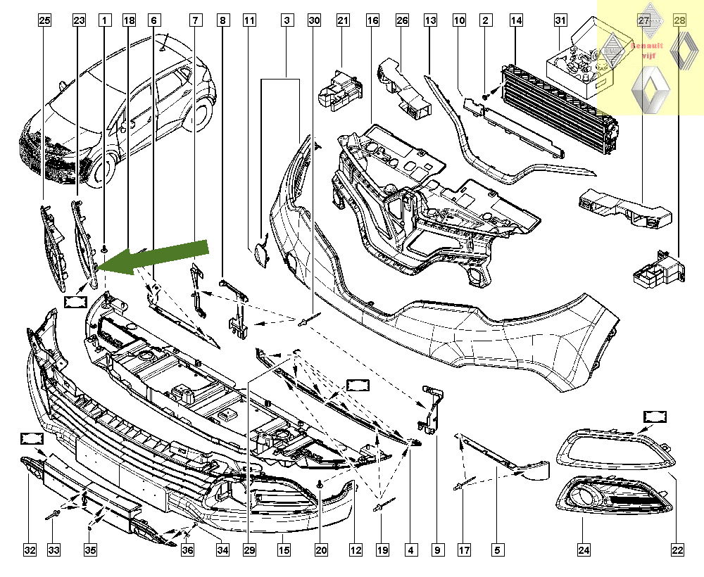 Sierlijst mistlamp rand rechts Renault Captur I.