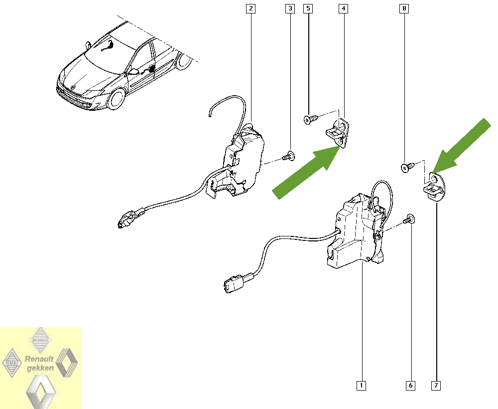 Slotvanger voorportier links of rechts Renault Clio III, Kangoo II/III, Laguna III of Master III.