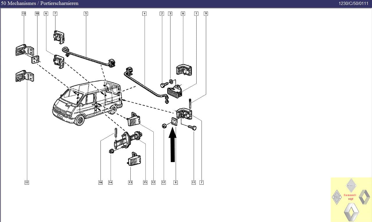 Spacer scharnier achterdeur links Renault Trafic I.