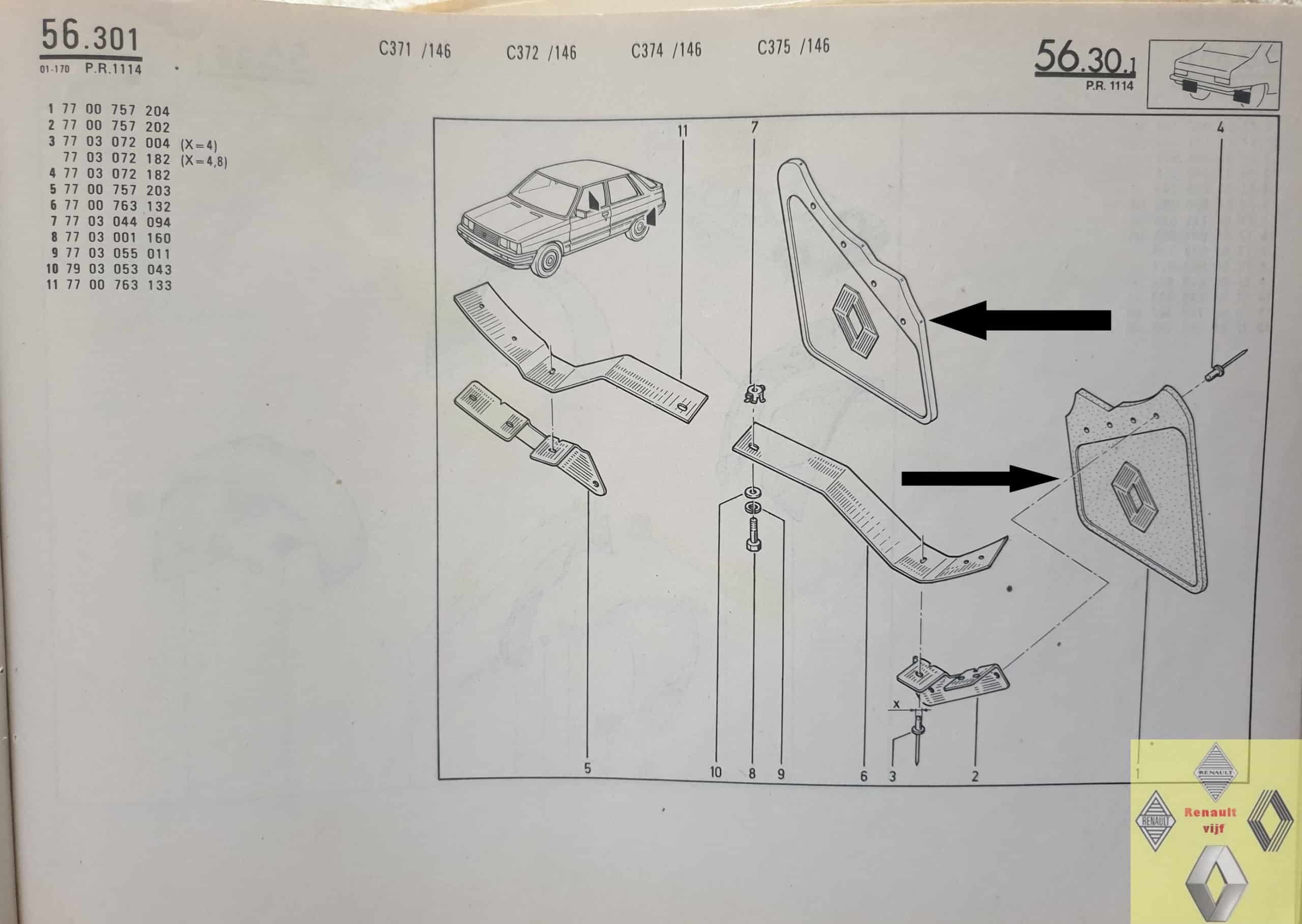 Spatlap achterzijde Renault 11.