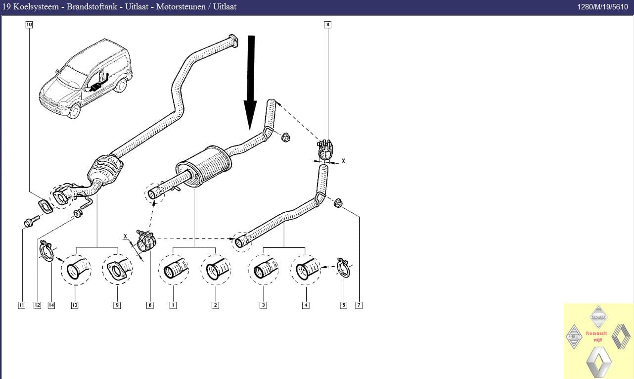Uitlaat middendemper Renault Kangoo.