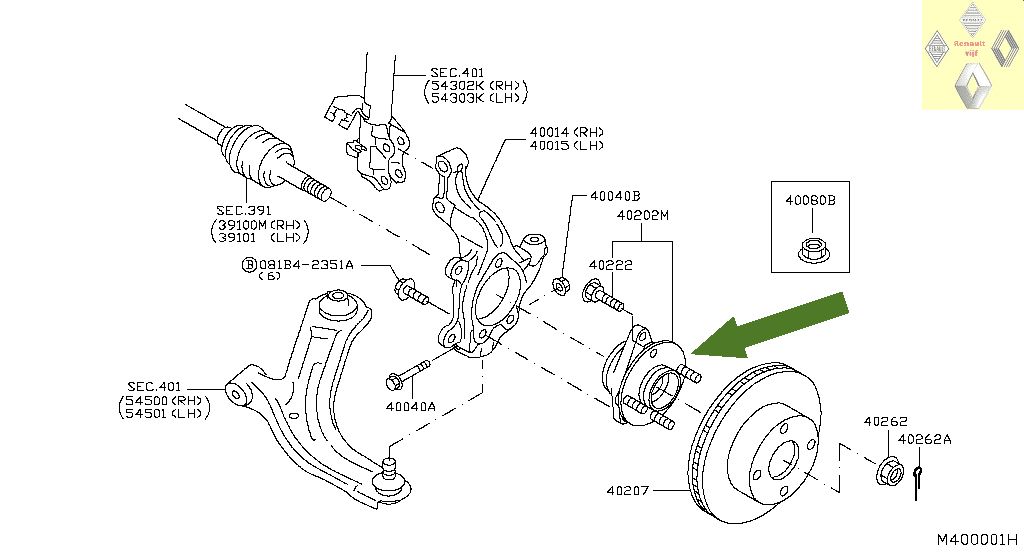 Naaf past zowel links als rechts en past op de modellen januari 2013 – juli 2015 met K9K (1.5) diesel motor.